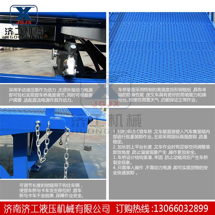 產(chǎn)品優(yōu)勢:單人操作,移動靈活方便,提高工作效率,節(jié)省勞動力,代替固定月臺不可移動的弊病。